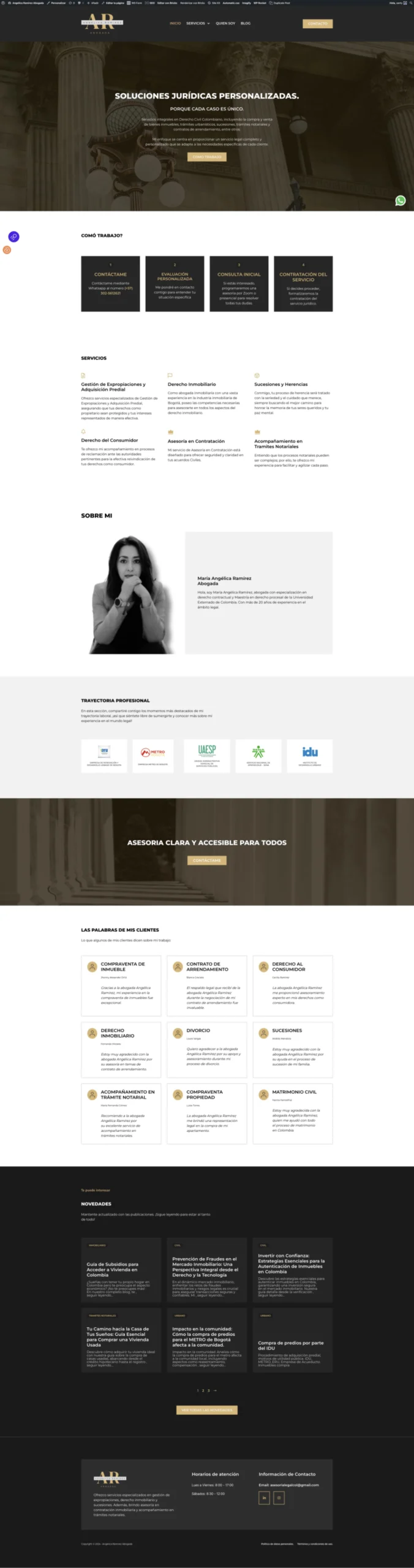 I developed a website for attorney Angélica Ramírez, specializing in real estate law and consumer rights. Using Brick Builder and Automatic CSS, I crafted a modern and functional design that reflects her expertise and professionalism.
